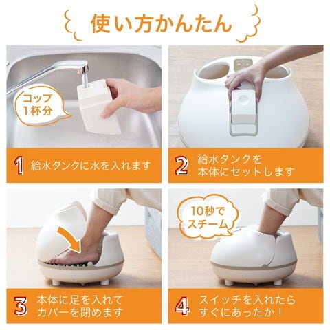 商品説明コップ1杯の水でどこでも足サウナが手軽にできるホットスチームフットバス