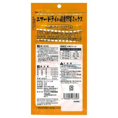 ママクック エアードライの国産野菜ミックス 犬用 23g