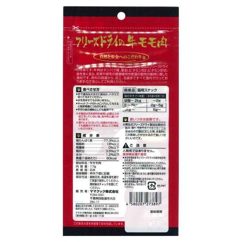ママクック フリーズドライの牛モモ肉 猫用 17g
