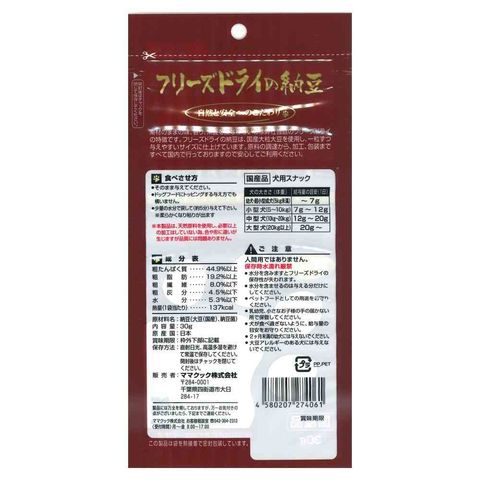 ママクック フリーズドライの納豆 犬用 30g