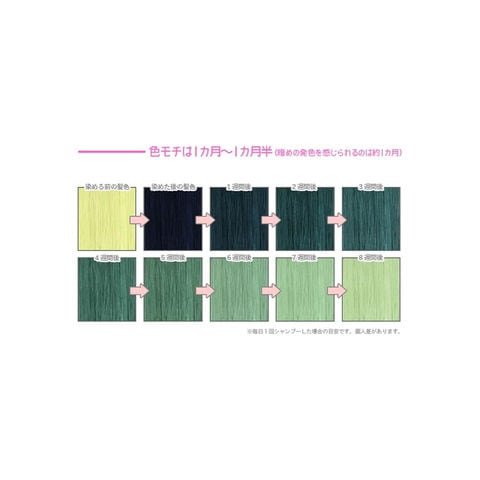 ■お肌に合わないときは、ご使用をおやめください。■本品は食べ物ではありません。■幼少児の手の届かないところに保管してください。■直射日光や光の強い場所での保管は避けてください。■目に入った時は、直ちに水かぬるま湯で洗い流し、眼科専門医の診断を受けてください。■使用中や使用後に刺激などの異常があらわれた時は、使用を中止し皮膚科専門医にご相談ください。■黒髪には色は入りません。■頭皮や手肌、爪、衣服、淡色系のシンクなど、髪以外に染料が付着した場合、染料が落ちにくい場合があります。