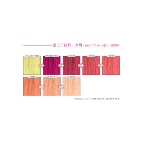 ■お肌に合わないときは、ご使用をおやめください。■本品は食べ物ではありません。■幼少児の手の届かないところに保管してください。■直射日光や光の強い場所での保管は避けてください。■目に入った時は、直ちに水かぬるま湯で洗い流し、眼科専門医の診断を受けてください。■使用中や使用後に刺激などの異常があらわれた時は、使用を中止し皮膚科専門医にご相談ください。■黒髪には色は入りません。■頭皮や手肌、爪、衣服、淡色系のシンクなど、髪以外に染料が付着した場合、染料が落ちにくい場合があります。