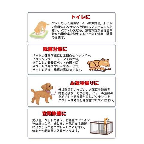 ペット、用品、犬、猫、消臭、除菌、安全、清潔、スプレー、空間除菌、次亜塩素酸水、ペットケア用品