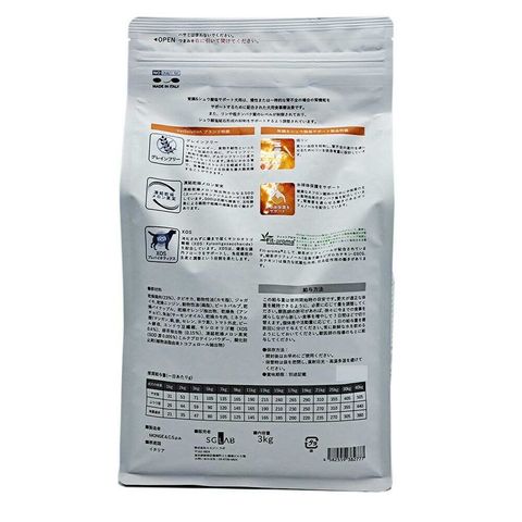 保障成分値(100gあたり)粗タンパク質18%以上、粗脂肪16%以上、粗繊維5.7%以下、粗灰分10%以下、水分10%以下