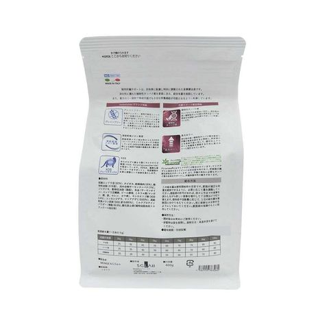 保障成分値(100gあたり)粗タンパク質23%以上、粗脂肪14%以上、粗繊維4.5%以下、粗灰分10%以下、水分8%以下