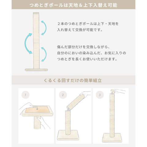 商品説明麻素材のつめとぎは使い込むほどに猫好みに。麻素材は、猫が引っ掻いて繊維がほつれていくことで、徐々に猫好みの柔らかさになっていきます。丈夫な素材で長く楽しむことができ、猫のつめとぎの目的の1つであるにおいづけもしっかりできます。