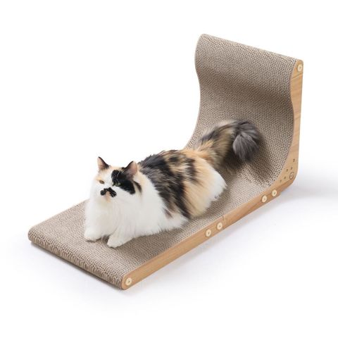 ・バリバリボード ウッドプレミアムは、猫工学に基づき、猫がつめとぎをする時に力がかからない位置に板の接合部がくるよう工夫をし、さらに日本の猫の生活シーンに合わせて壁の下部にある巾木に当たらないように形状をデザインしているので、安定感抜群で思い切りバリバリすることが出来ます。