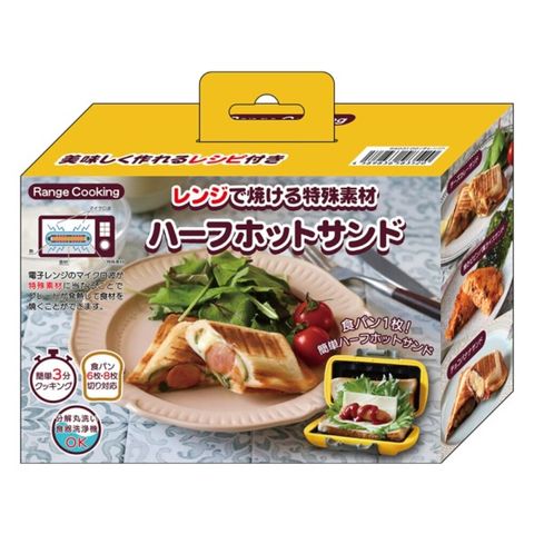 商品説明レンジでホットサンドが焼ける!簡単3分クッキング♪忙しい朝にピッタリ!食パン1枚で作れるハーフホットサンドメーカー!食パンは6枚・8枚切対応。分解丸洗い、食器洗浄機使用OK!レンジでホットサンドが焼ける特殊な素材をプレート底面に使用。電子レンジから出るマイクロ波がプレート底面の素材に当たることでプレートが発熱して、食材を焼くことができます。
