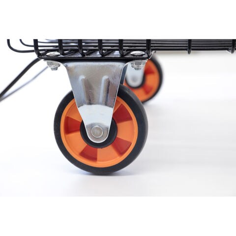 本体:スチール(粉体塗装)、タイヤ:ポリプロピレン・TPR、バスケットカバー:ポリエステル100%