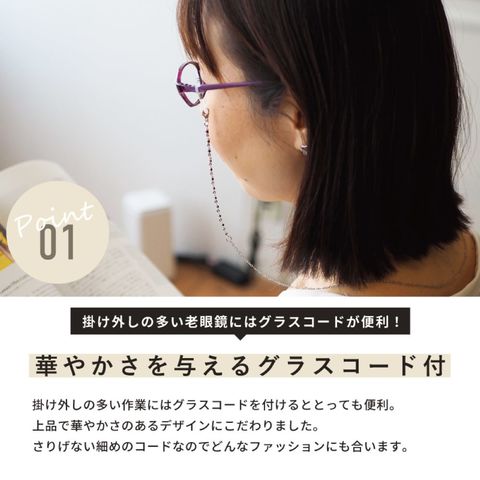 老眼鏡 リーディンググラス シニアグラス 紫外線カット UVカット ブルーライト ブルーライトカット メガネ 男性 メンズ 女性 レディース 軽量 軽い おしゃれ オシャレ カジュアル 掛け心地 グラスコード 首掛け 華やか