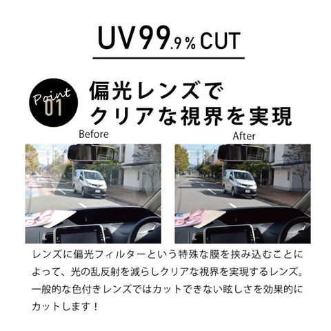 ●道路の照り返しが減少し、クリアな視界にしてくれます。