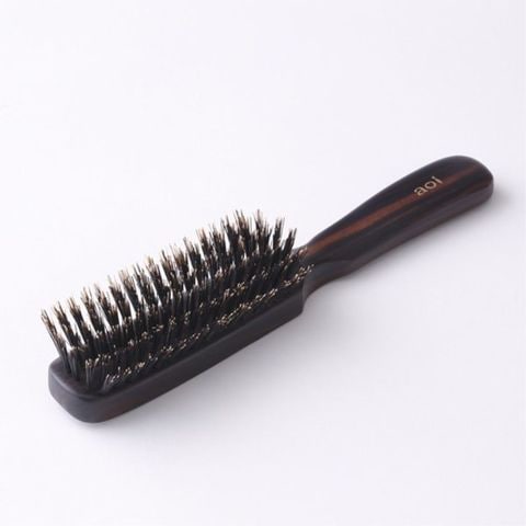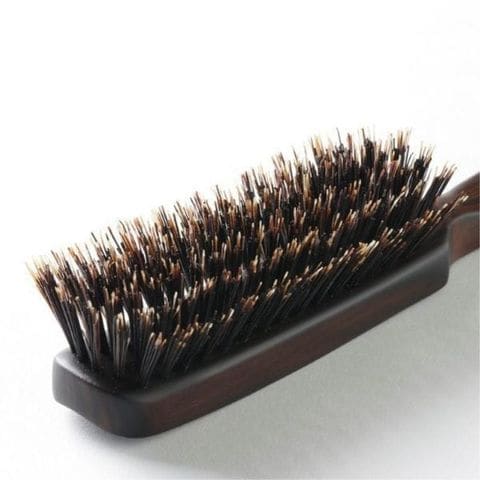 商品説明クオリティーの高い猪毛の毛根部分と中間の猪毛を調合、程よいコシがありしっかりと地肌まで届きブラッシングできます。毛の長さを不揃いにすることで的確に髪をとらえブラッシングの際に頭皮のマッサージ効果を求める方にお勧めです。普通の毛量の方にお勧めのブラシです。熟練の職人が手作りする希少価値のある国産ヘアブラシ!約100年に渡り培われてきた職人の感覚と技により、ひとつひとつ丹念に仕上げられた伝統を誇る逸品。手植えならではの巧の技術が活かされています。●お手入れ方法:ブラシ部分に髪の毛がたまりましたら、櫛などで取り除いてブラシクリーナーで隙間を掃除してください。天然毛ヘアブラシは水洗いしないことが原則です。直射日光やドライヤーで乾かすとヒビ割れの原因になってしまいます。毛穴に水分を残しますと、毛抜けなどの原因になるおそれがあります。木製のハンドル部分には黒檀を使用しています。末長くお使いになっていただくためにも、頻繁に洗うことはおやめください。