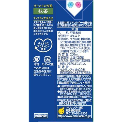 ◆マルサン ひとつ上の豆乳 豆乳飲料 抹茶 200ml