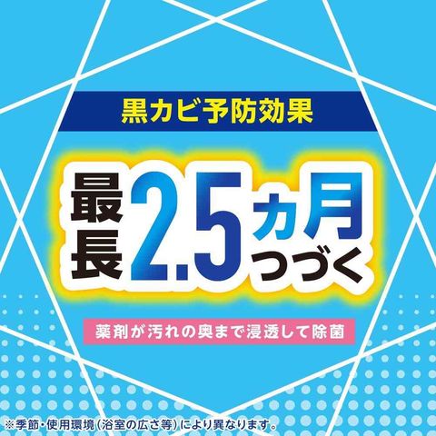 最長2.5ヵ月※お風呂の黒カビを防ぎ、使えば使うほど黒カビ掃除がいらなくなります。