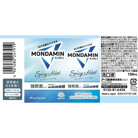アース製薬 モンダミン スパイシーミント 100ml