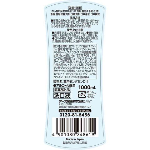 もんだみん、マウスウォッシュ、まうすうぉっしゅ、洗口液、口腔ケア、口臭ケア、オーラルケア、口臭予防、口臭対策、虫歯予防、虫歯対策、歯周病予防、歯肉炎予防、予防、対策、大容量、液体、液剤、アース