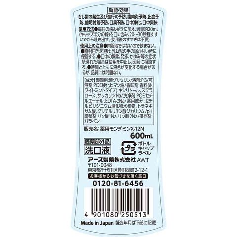 もんだみん、マウスウォッシュ、まうすうぉっしゅ、洗口液、口腔ケア、口臭ケア、オーラルケア、口臭予防、口臭対策、虫歯予防、虫歯対策、歯周病予防、歯肉炎予防、予防、対策、大容量、液体、液剤、アース