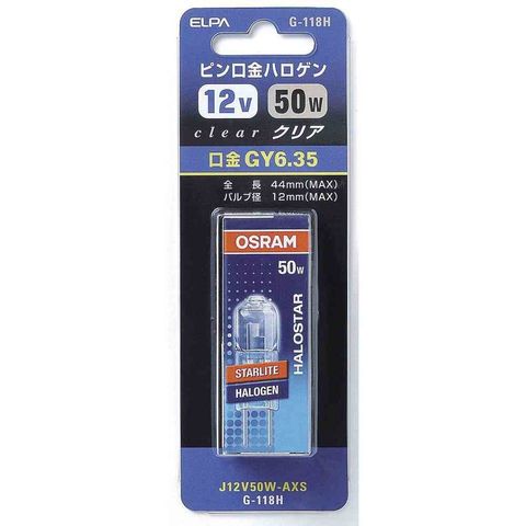 エルパ ELPA ピン口金ハロゲン 12V50W クリア GY6.35 G-118H(50W)