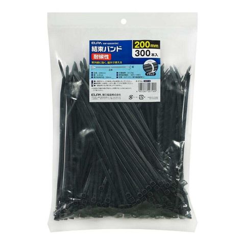 エルパ ELPA 結束バンド 200mm 耐候性 KBF-N200300 ブラック 300本入