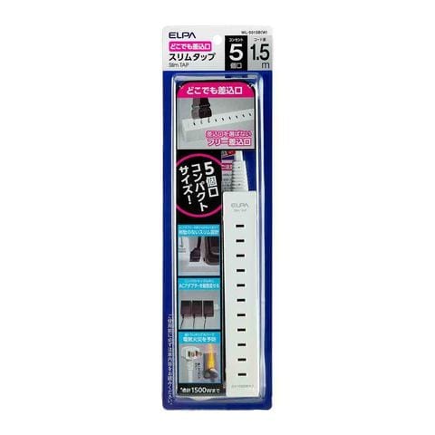 朝日電器 ELPA スリムタップ 5個口 1.5m WL-5015B (W)