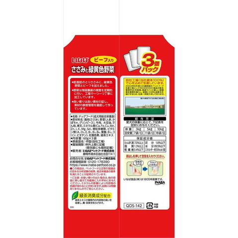 いなばペットフード いなば ささみと緑黄色野菜 ビーフ入り 60g×3袋