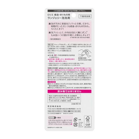 花王 ロリエ 経血・おりもの用 ランジェリー泡洗剤 80ml