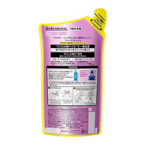 【医薬部外品】サクセス リンスいらない薬用シャンプー スムースウォッシュエクストラクール 詰替え 320ml