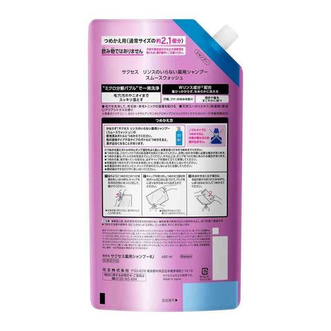 花王 サクセス リンスのいらないシャンプー スムースウォッシュ 詰替 680ml