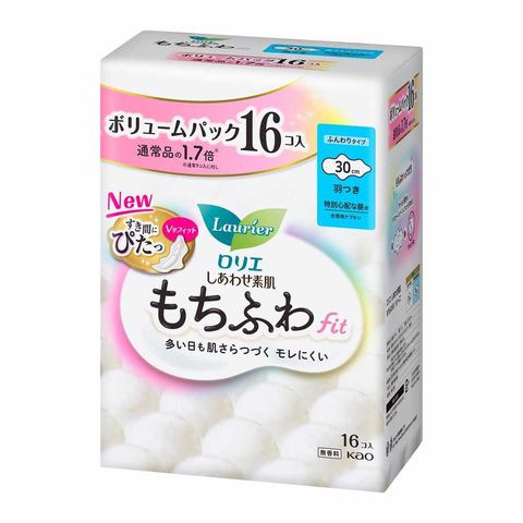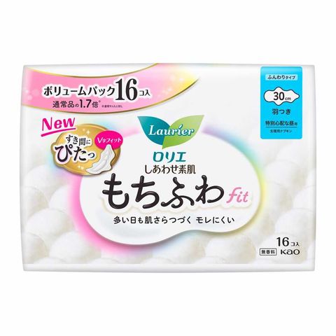 花王 ロリエ しあわせ素肌 もちふわfit ボリュームパック 特別心配な昼用30cm 羽つき 16個