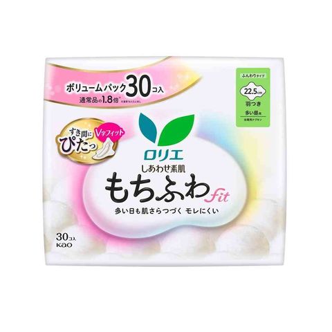 花王株式会社、kao、ロリエ、しあわせ素肌、生理、生理用品、ナプキン、もちふわフィット、昼用、日中用、多い日用、多い昼用、羽根つき、ハネつき、羽つき、ムレ、かぶれ、敏感肌、大容量、ボリュームパック