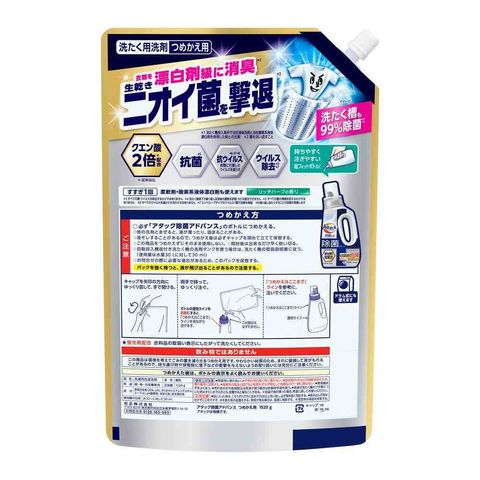 花王、kao、アタック、Attack、除菌、アドバンス、除菌アドバンス、洗濯、お洗濯、洗濯洗剤、洗剤、すすぎ1回、抗菌、消臭、リッチハーブの香り、つめかえ、詰め替え、詰替え、詰替、リペア、大容量、ジャンボ、特大