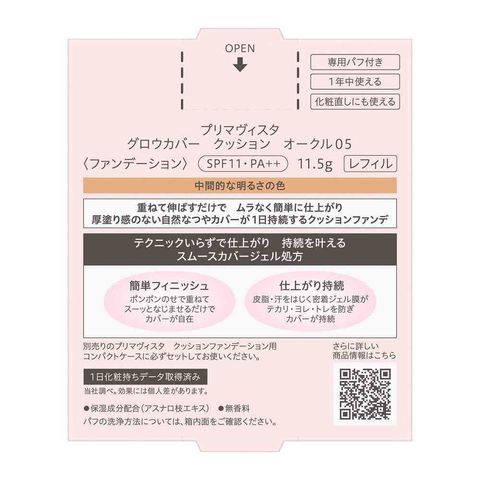 プリマヴィスタ、グロウカバー、クッション、オークル05、保湿成分配合、無香料