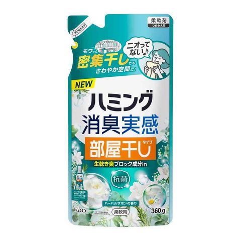 花王、ハミング、消臭、実感、柔軟剤、洗濯、ソフター、衣類、洗剤、芳香、柔らか、香り、ふわふわ、デオドラント、部屋干し、生乾き、ハーバル、サボン、詰替、詰替え、詰め替え、つめかえ、レフィル