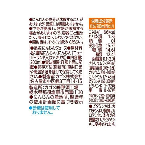 ◆カゴメ にんじんジュース 高β-カロテン 200ml