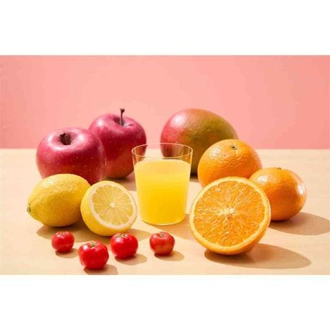 ■原材料名 果実(りんご(輸入)、マンゴー、レモン、オレンジ、うんしゅうみかん、カムカム、アセロラ)、果糖ぶどう糖液糖/クエン酸、香料、ビタミンC、ビタミンE、ビタミンB2、ビタミンD、ビタミンB12