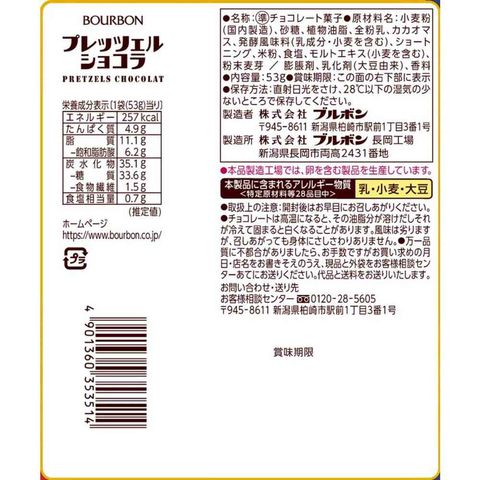 つぶ塩つきの堅焼きプレッツェルにチョコレートを掛けた甘じょっぱ系チョコスナックです。