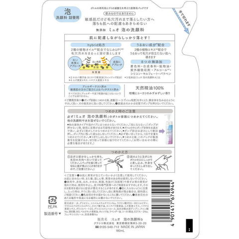 クラシエホームプロダクツ muo(ミュオ) 泡の洗顔料 詰替用 180ml