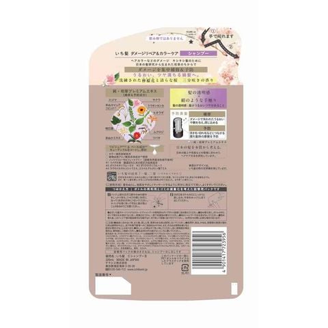 染めた髪、ヘアカラー、ダメージ、キシキシ髪、集中補修、予防、色あせ、うるおい、艶、透明感、毛先、バサバサ、パサつき、広がる、カラー褪色抑制、ノンシリコンシャンプー、アミノ酸系洗浄成分、サルフェートフリー、美しい髪色、檸檬花と桜の香り、詰め替え
