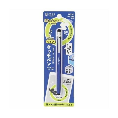 タッチペン ツインタイプ シリコーン製 布製 しっかり さらさら 持ち慣れたえんぴつ型(六角軸)で持ちやすい!。マグネット筆入の鉛筆ホルダーに入れることもできます。お名前スペース付きです。 便利なクリップ付き。タブレットケースのポケットなどに挟むことができます。