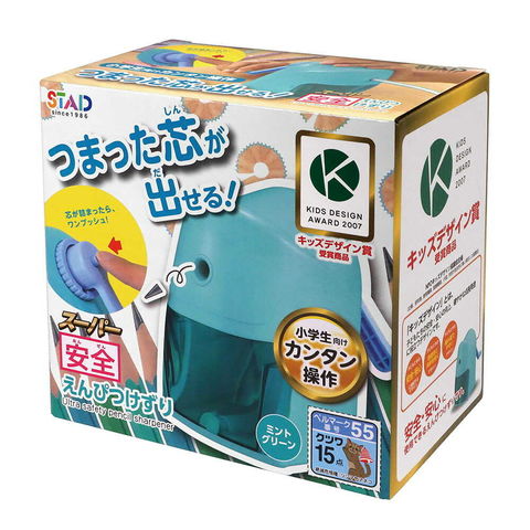 鉛筆削り、スーパー安全、えんぴつけずり、キッズデザイン賞、2007、小学生、安心、詰まった芯出せる、ワンプッシュ