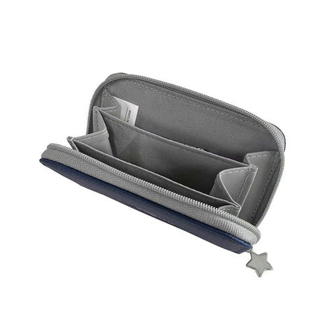 シングルウォレット、かさばらない、コンパクトタイプ、型押しワンポイントデザイン、かわいい、星型引き手