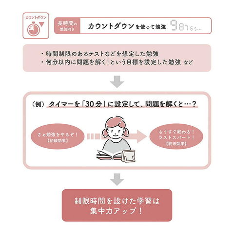 時間の経過と共に液晶のメモリが増減して視覚的にすぐに経過時間を認識出来ます。