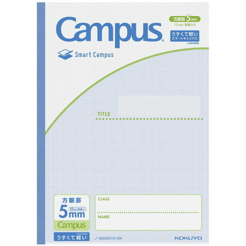 ●うすくて軽いキャンパスノート<スマートキャンパス>(セミB5・5mm方眼罫10mm実線入り・30枚)