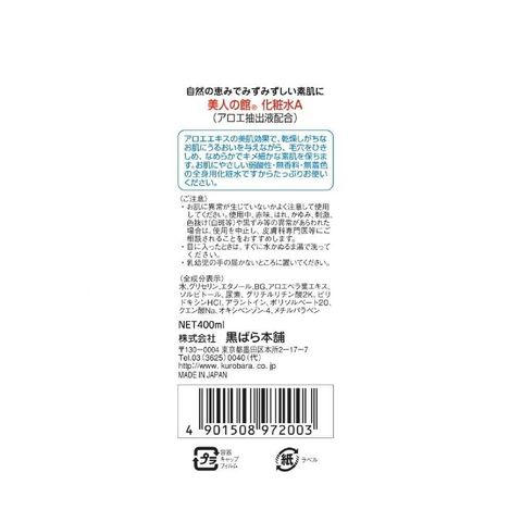 黒ばら本舗 美人の館 アロエ化粧水 400ml