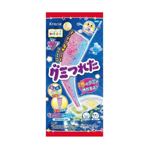 砂糖(国内製造)、ぶどう糖、でん粉、卵白粉末/酸味料、乳酸カルシウム、ゲル化剤(アルギン酸ナトリウム)、重曹、香料、着色料(野菜色素、スピルリナ青、クチナシ、紅花黄)、(一部に卵を含む)