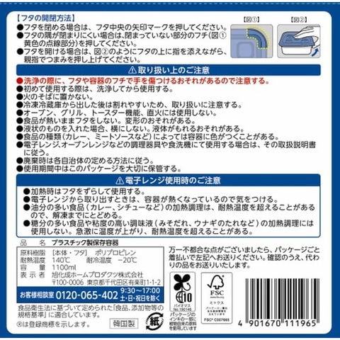 耐熱温度140℃耐冷温度-20℃で、冷凍保存からフタごと電子レンジ加熱までできます。異なるサイズ同士でも積み重ねて保存でき、使わない時は重ねて収納できます。底面とフタの凹凸で重ねた時にずれにくくなっています。フタの中央部分を押すとパチンと閉まって、しっかり密閉します。中身がひと目でわかる半透明の容器です。容器側面の目盛りは目安としてお使い下さい。
