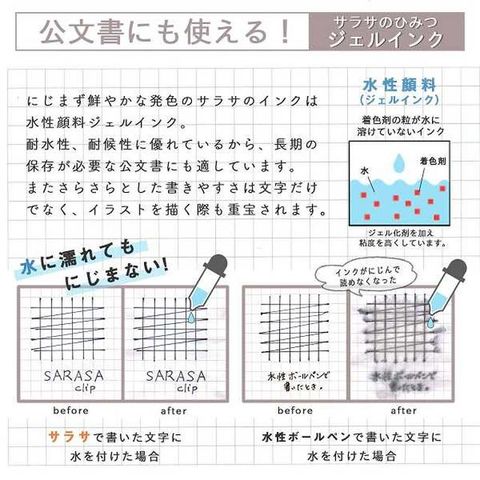 ジェルボールペン、水性ボールペン、さらさら、サラサ