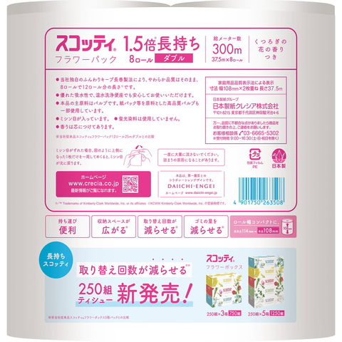 日本製紙 スコッティ フラワーパック1.5倍長持ち ダブル 37.5m×8ロール