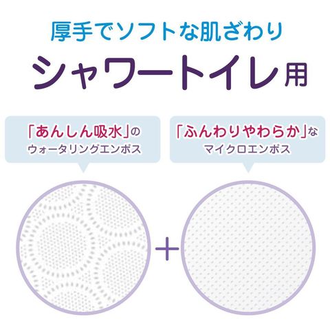 パルプの配合へのこだわりと、吸水性に優れたウォータリングエンボス加工で、ふんわり厚手仕上げ。