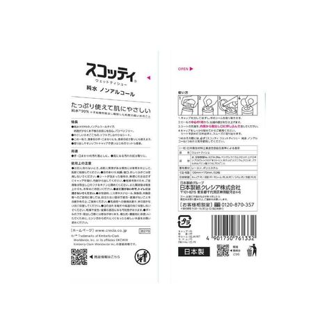 クレシア スコッティ ウェットティシュー 純水 ノンアルコール 150枚